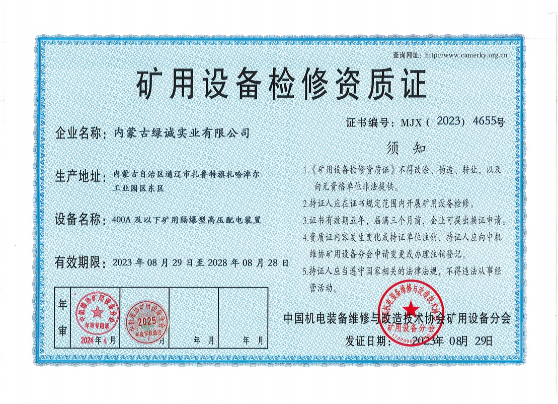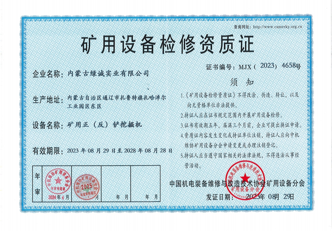 2018年我公司通過中國機(jī)電裝備維修與改造技術(shù)協(xié)會礦用設(shè)備分會審核并取得了9項(xiàng)礦用設(shè)備檢修資質(zhì)證書。公司本著“誠信為本 質(zhì)量為先 全心全意為客戶 ”的服務(wù)理念,圓滿完成各個廠礦的機(jī)械維修及配套服務(wù),期待與您共同合作。
